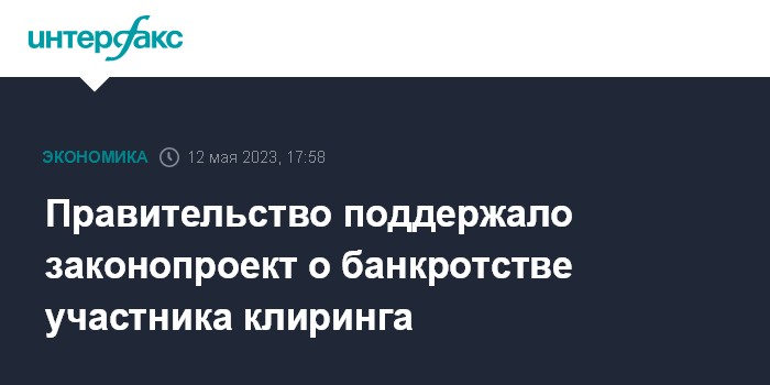 Правительство поддержало законопроект о банкротстве участника клиринга