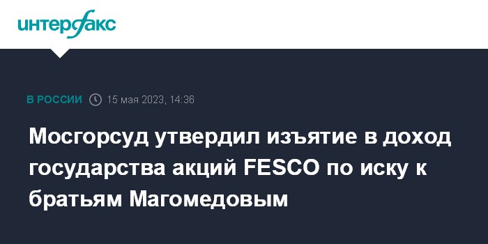 Москва. 15 мая. INTERFAX.RU - Мосгорсуд оставил без изменений решение Хамовнического суда от 11 января 2023 года об обращении в доход государства акций группы FESCO по иску Генпрокуратуры России к основателю группы "Сумма" Зиявудину Магомедову, его брату - Магомеду Магомедову и ряду физических и юридических лиц.