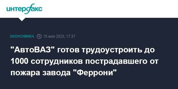 "АвтоВАЗ" готов трудоустроить до 1000 сотрудников пострадавшего от пожара завода "Феррони"