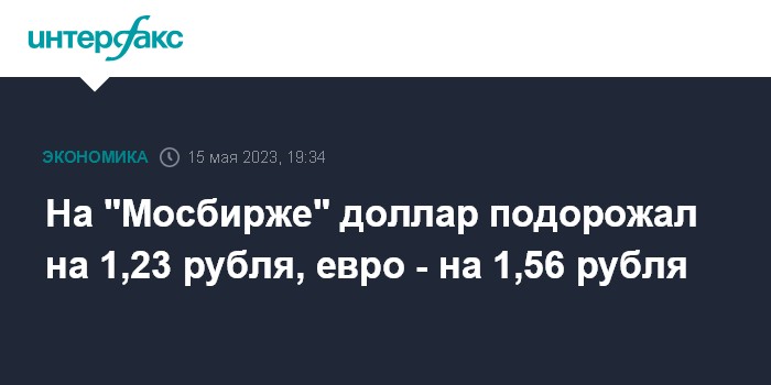 На "Мосбирже" доллар подорожал на 1,23 рубля, евро - на 1,56 рубля