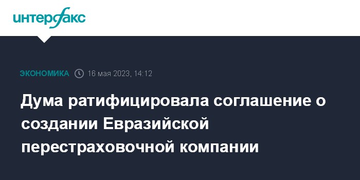 В конце марта 2023 года правительство внесло на ратификацию в Госдуму соглашение об учреждении Евразийской перестраховочной компании.