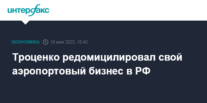 Троценко редомицилировал свой аэропортовый бизнес в РФ