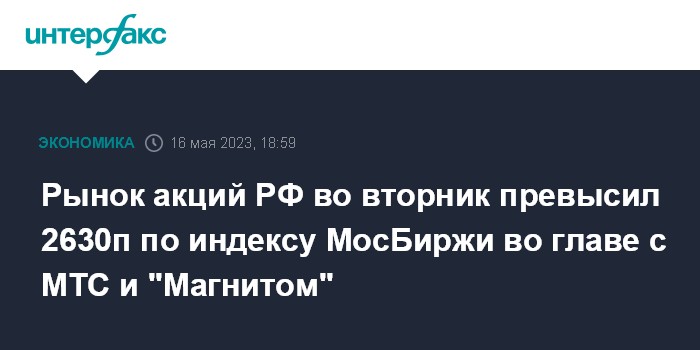 Рынок акций РФ во вторник превысил 2630п по индексу МосБиржи во главе с МТС и "Магнитом"