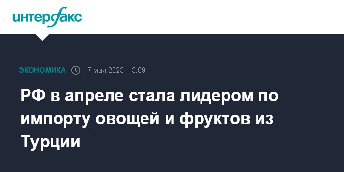 РФ в апреле стала лидером по импорту овощей и фруктов из Турции