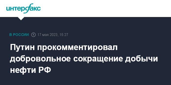 Москва. 17 мая. INTERFAX.RU - Действия России по добровольному сокращению нефтедобычи направлены на поддержание определенной ценовой конъюнктуры на мировом рынке в диалоге с партнерами по ОПЕК+, сообщил на совещании президент Владимир Путин.