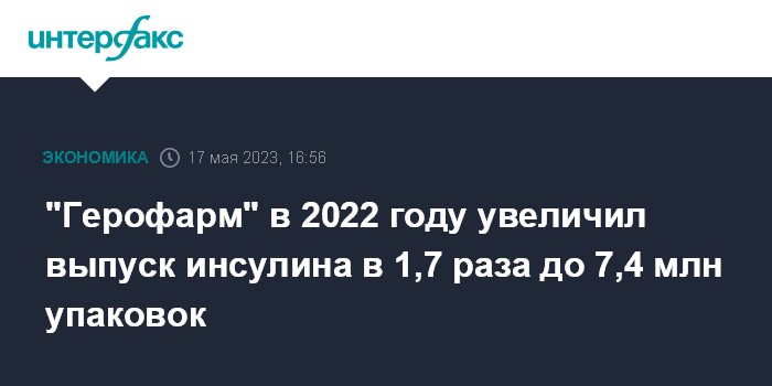 "Герофарм" в 2022 году увеличил выпуск инсулина в 1,7 раза до 7,4 млн упаковок