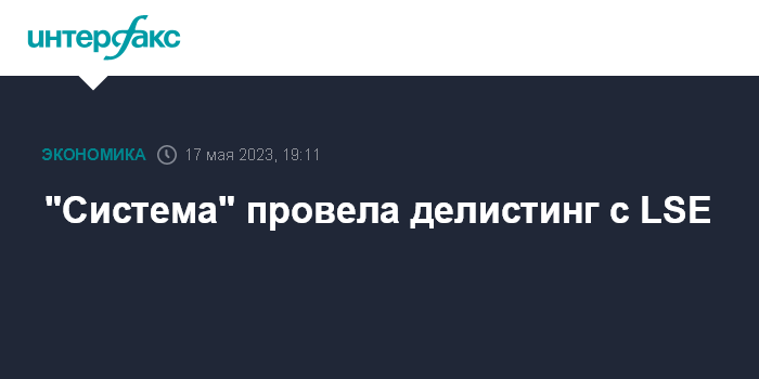 Москва. 17 мая. INTERFAX.RU - ПАО АФК "Система" завершило процедуру делистинга с Лондонской фондовой биржи, сообщила корпорация.