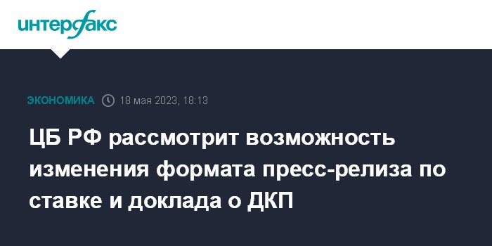 ЦБ РФ рассмотрит возможность изменения формата пресс-релиза по ставке и доклада о ДКП