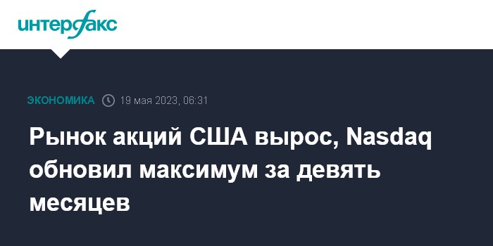 Москва. 19 мая. INTERFAX.RU - Американские фондовые индексы завершили в плюсе торги в четверг благодаря надеждам на положительный исход переговоров о повышении госдолга США.