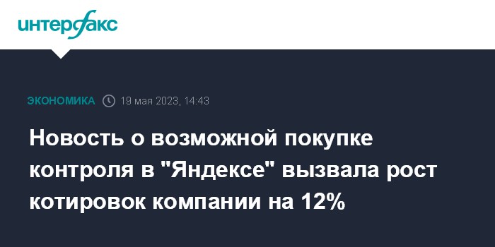 Новость о возможной покупке контроля в "Яндексе" вызвала рост котировок компании на 12%