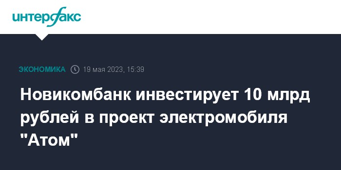 Новикомбанк инвестирует 10 млрд рублей в проект электромобиля "Атом"