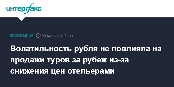 Москва. 22 мая. INTERFAX.RU - Волатильность рубля традиционно негативно сказывается на продажах туров за рубеж, однако снижение цен накануне летнего сезона почти на всех наиболее популярных зарубежных направлениях нивелировало влияние текущих валютных колебаний на стоимость путешествий, сообщили "Интерфаксу" опрошенные эксперты.