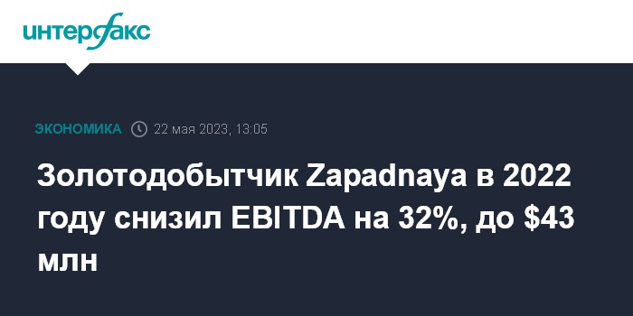 Золотодобытчик Zapadnaya в 2022 году снизил EBITDА на 32%, до $43 млн