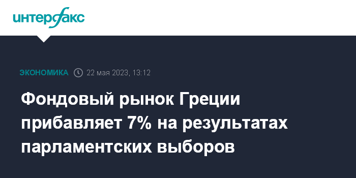 Москва. 22 мая. INTERFAX.RU - Греческий фондовый индекс Athex Composite прибавляет 7% на торгах 22 мая на итогах парламентских выборов, где правящая партия получила существенное преимущество перед ближайшим конкурентом.