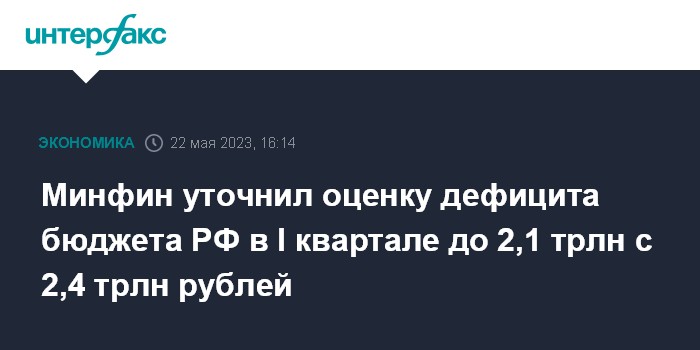 Минфин уточнил оценку дефицита бюджета РФ в I квартале до 2,1 трлн с 2,4 трлн рублей
