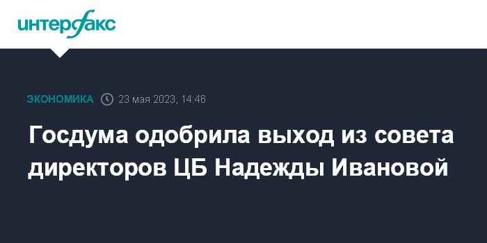 Москва. 23 мая. INTERFAX.RU - Госдума поддержала представление Банка России о досрочном освобождении Надежды Ивановой от должности члена совета директоров ЦБ в связи с ее уходом на пенсию.