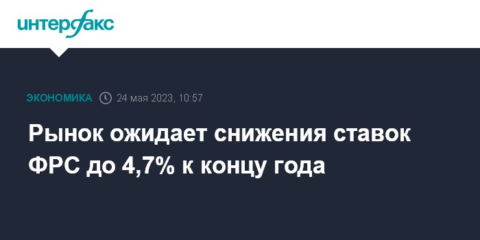 Москва. 24 мая. INTERFAX.RU - Федеральная резервная система США понизит процентные ставки к концу года до 4,7% с нынешних 5-5,25%, ожидают трейдеры на рынке облигаций.