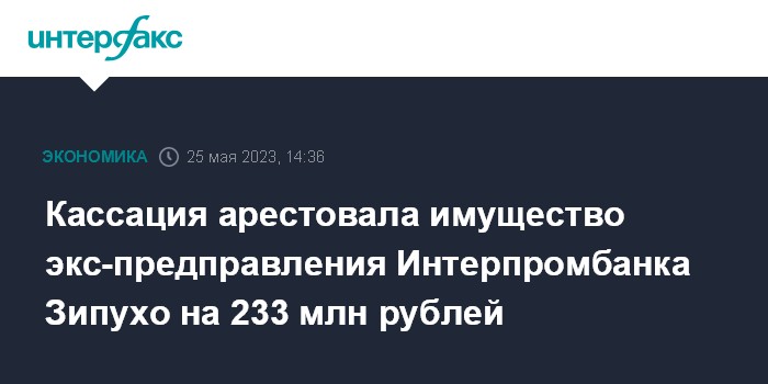 Кассация арестовала имущество экс-предправления Интерпромбанка Зипухо на 233 млн рублей