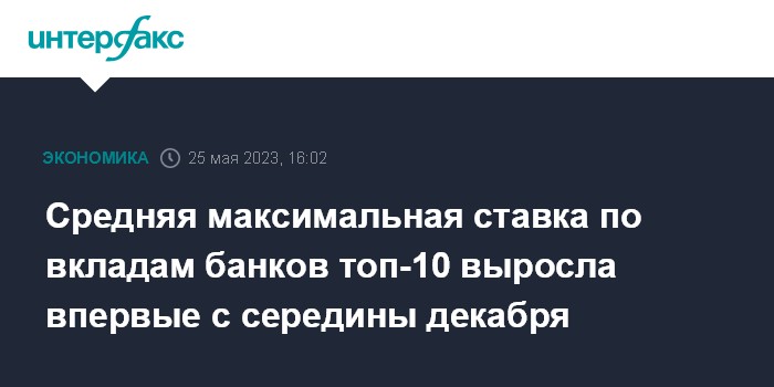 Средняя максимальная ставка по вкладам банков топ-10 выросла впервые с середины декабря