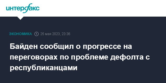 Москва. 25 мая. INTERFAX.RU - Президент США Джо Байден в четверг заявил, что переговоры с конгрессменами-республиканцами о том, как избежать дефолта, проходят успешно, но еще не завершены.