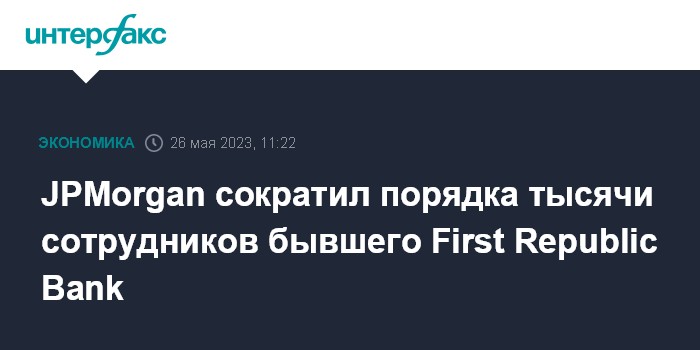JPMorgan сократил порядка тысячи сотрудников бывшего First Republic Bank
