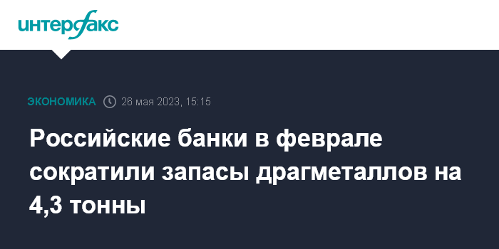 Российские банки в феврале сократили запасы драгметаллов на 4,3 тонны