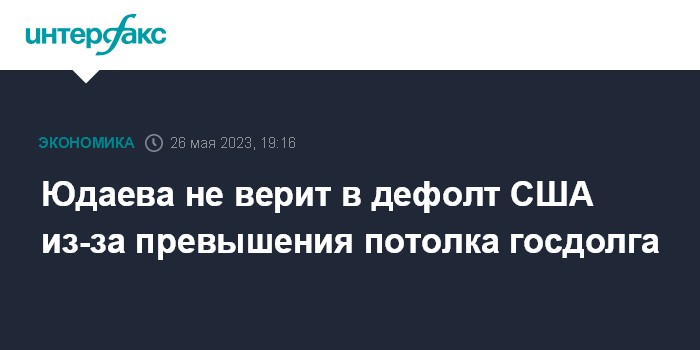 Юдаева не верит в дефолт США из-за превышения потолка госдолга