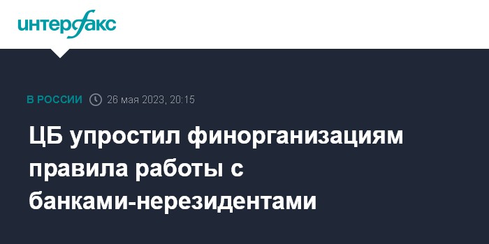 Москва. 26 мая. INTERFAX.RU - Банк России сообщил, что упростил взаимодействие финансовых организаций с иностранными клиентами, позволив им заключать договоры с банками-нерезидентами без легализации официальных документов.