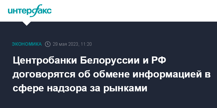 Центробанки Белоруссии и РФ договорятся об обмене информацией в сфере надзора за рынками