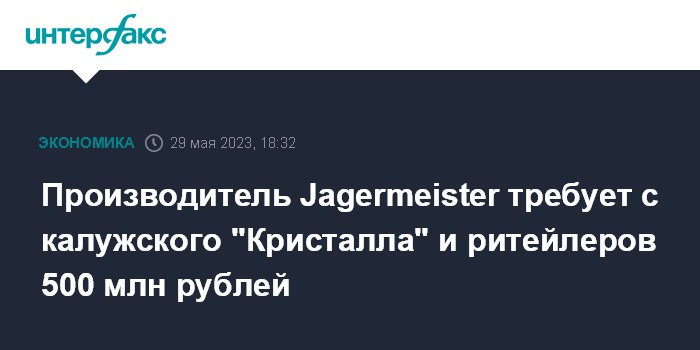 Производитель Jagermeister требует с калужского "Кристалла" и ритейлеров 500 млн рублей