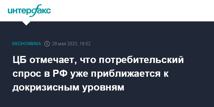 ЦБ отмечает, что потребительский спрос в РФ уже приближается к докризисным уровням