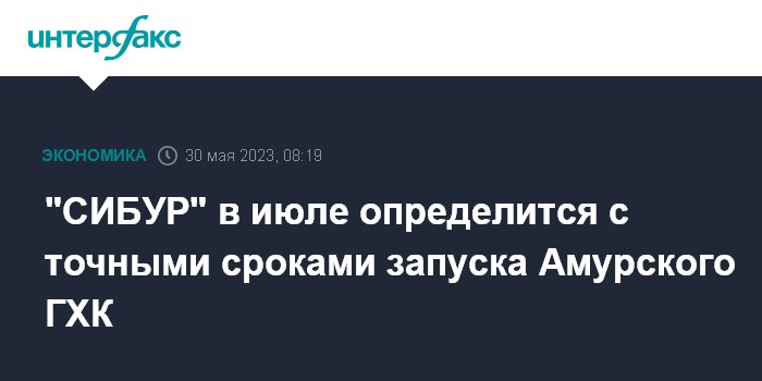 Москва. 30 мая. INTERFAX.RU - "СИБУР" сохраняет предварительные планы получения первой продукции на "Амурском газохимическом комплексе" (ООО "АГХК", 60% у "СИБУРа" и 40% у китайской Sinopec) в 2026 году, однако уточнит сроки в середине лета, сообщил "Интерфаксу" член правления - исполнительный директор ООО "СИБУР" Павел Ляхович.
