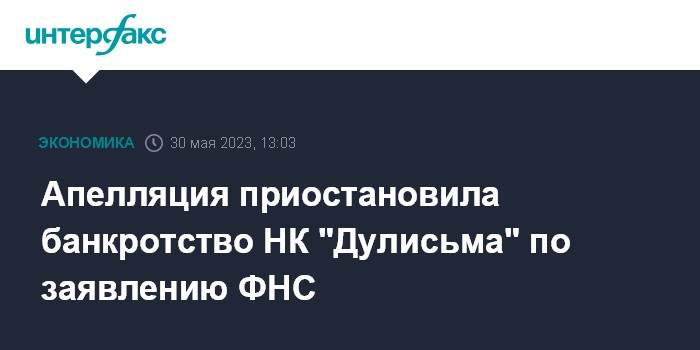 Апелляция приостановила банкротство НК "Дулисьма" по заявлению ФНС