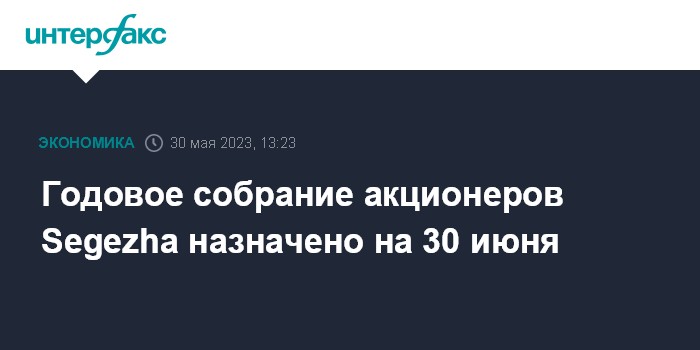Москва. 30 мая. INTERFAX.RU - Совет директоров Segezha Group (подконтрольный АФК "Система" лесопромышленный холдинг) одобрил проведение годового собрания акционеров компании 30 июня 2023 года в заочном режиме, говорится в сообщении компании.