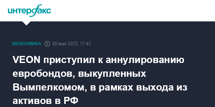 VEON приступил к аннулированию евробондов, выкупленных Вымпелкомом, в рамках выхода из активов в РФ