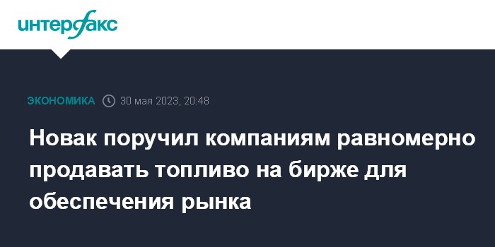 Новак поручил компаниям равномерно продавать топливо на бирже для обеспечения рынка
