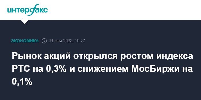 Рынок акций открылся ростом индекса РТС на 0,3% и снижением МосБиржи на 0,1%