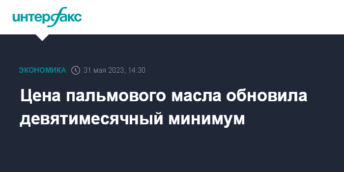 Москва. 31 мая. INTERFAX.RU - Стоимость пальмового масла опустилась до минимума с ноября 2022 года на фоне высокого предложения и снижения спроса, отмечает Trading Economics.