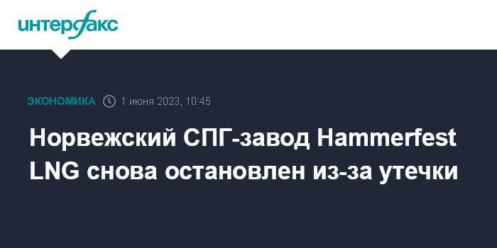 Москва. 1 июня. INTERFAX.RU - Equinor подтвердила произошедшую 31 мая утечку на СПГ-заводе Hammerfest LNG и последующую остановку предприятия.