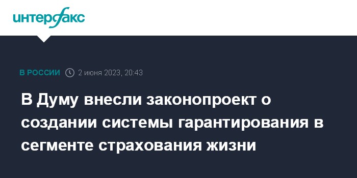Москва. 2 июня. INTERFAX.RU - Группа депутатов и сенаторов внесла в Госдуму законопроект № 372345-8 о создании системы гарантирования на страховом рынке в сегменте страхования жизни внесен в Госдуму, документ подготовлен группой депутатов Госдумы и сенаторов, размещен в электронной базе данных парламента.
