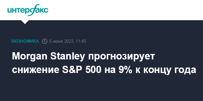 Москва. 5 июня. INTERFAX.RU - Аналитики Morgan Stanley прогнозируют снижение фондового индекса S&P 500 на 9% с нынешнего уровня к концу 2023 года, ожидая ухудшения корпоративных прибылей.