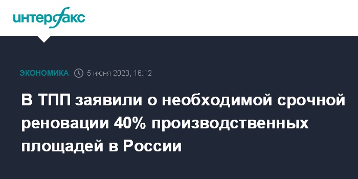 В ТПП заявили о необходимой срочной реновации 40% производственных площадей в России