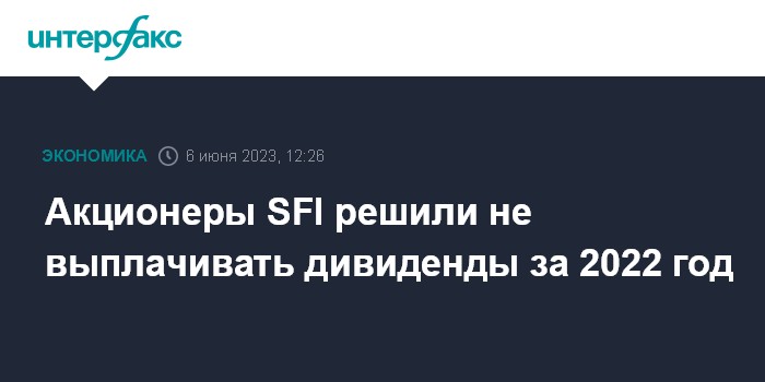 Акционеры SFI решили не выплачивать дивиденды за 2022 год