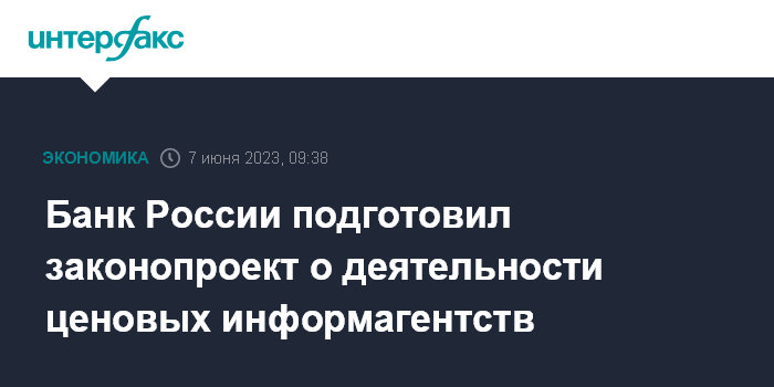 Банк России подготовил законопроект о деятельности ценовых информагентств
