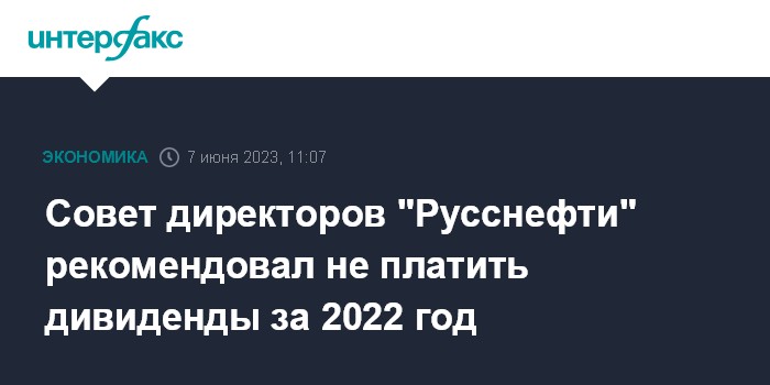 Совет директоров "Русснефти" рекомендовал не платить дивиденды за 2022 год