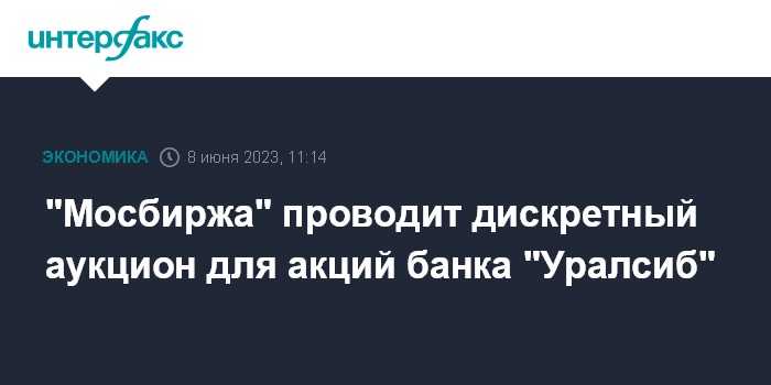 "Мосбиржа" проводит дискретный аукцион для акций банка "Уралсиб"