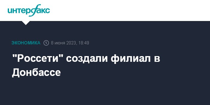 Москва. 8 июня. INTERFAX.RU - ПАО "Федеральная сетевая компания - Россети" (сокращенно - "Россети") создало новый филиал - "Донбасское предприятие магистральных электрических сетей", которое будет отвечать за модернизацию и развитие магистрального электросетевого комплекса Донецкой и Луганской народных республик.