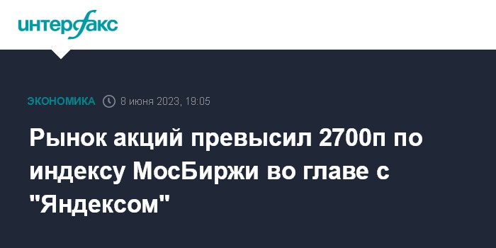 Рынок акций превысил 2700п по индексу МосБиржи во главе с "Яндексом"