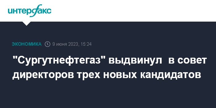 Москва. 9 июня. INTERFAX.RU - Кандидатами в новый состав совета директоров ПАО "Сургутнефтегаз" предложены три новых участника, следует из материалов компании к ГОСА.