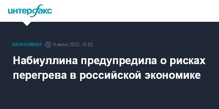 Москва. 9 июня. INTERFAX.RU - Российская экономика сейчас не находится в фазе перегрева, но в Банке России видят такие риски, им надо уделять внимание, заявила на брифинге председатель ЦБ Эльвира Набиуллина.